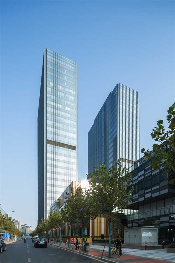 前滩世贸中心一期由国际顶级建筑师事务所设计,外观简洁现代,建筑品质优异。它包括两栋28层的办公双子塔楼,内部空间利用率高,基本为整层出租,可以满足国际公司对高标准办公环境的要求。此外,还设有7栋相互独立的多层商业楼宇,为街区式布局,提供了完善的配套设施,以满足租户对餐饮、零售和生活的全方位需求。